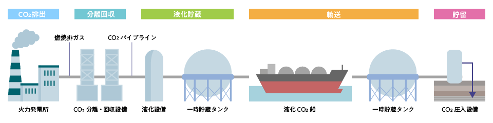CCSビジネスのバリューチェーン(船で貯蔵地まで運ぶ場合)