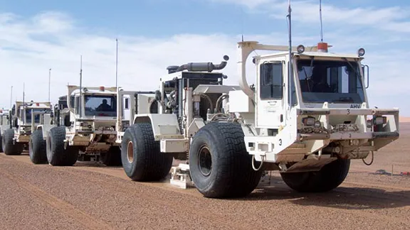 地層を構成する岩石の硬さや密度など物理的な性質を利用して地下の地質構造を調べます。これが物理探査です。その一つ、地震探査は、地表や海上から地下に人工的な音波(地震波)を送り、地下の岩石にぶつかって地表に戻ってきた振動を分析して、地下の地質構造を調べます。
