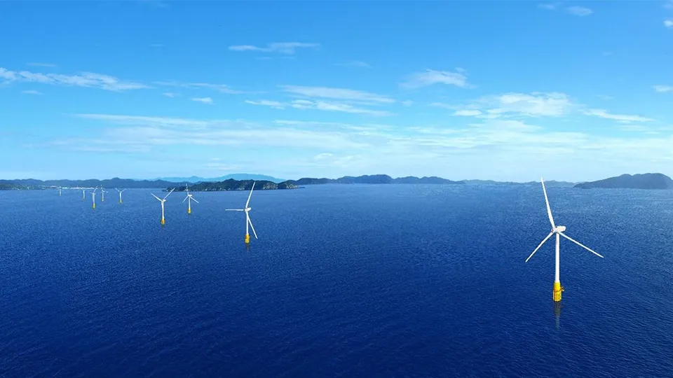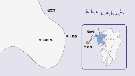 当社は、五島フローティングウィンドファーム合同会社(以下、同社)への出資を通じて、五島市沖洋上風力発電事業(以下、本事業)へ参画しています。本事業は、再エネ海域利用法※に基づく浮体式洋上風力発電所として計画され、2022年4月に国内で初めて公募占用計画の認定を受けた後、発電設備の設置工事に必要な海域占用等の許認可を取得しました。現在、2026年1月の運転開始を目指して、工事を進めています。