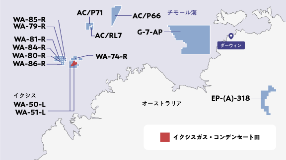 地図:イクシスLNGプロジェクト、及び周辺鉱区