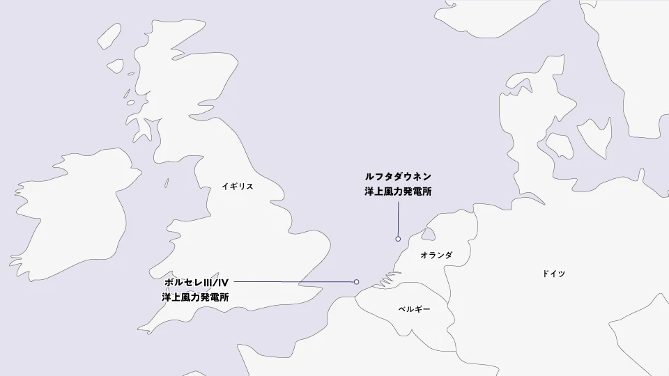 当社は、2021年12月に、三菱商事株式会社の100%孫会社である蘭法人Diamond Generating Europe B.V.社(以下、DGE-NL)との間でDGE-NL子会社の株式譲渡契約を締結しました。2022年2月にはオランダ沖合にて操業中のルフタダウネン洋上風力発電所の50%持分を取得し、本事業に参画しました。ルフタダウネン洋上風力発電所(着床式洋上風力発電)は、ノルドバイク市の沖合23kmに位置し、操業会社ClusiusC.V.を通じて2015年9月から129メガワット(3メガワット×43基)の出力規模で商業運転を行っています。