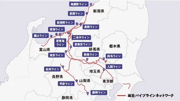 南長岡ガス田で生産される天然ガスは、プラントで処理した後、パイプラインネットワークを通じて沿線の都市ガス事業者及び工業用需要家の皆様へ販売しています。