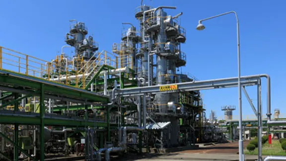 1984年9月より稼働しています。ガス処理能力は国内最大級の日量420万Nm3。当ガス田から産出される天然ガス中に含まれている炭酸ガスの除去プロセスとして、親沢プラントで実績のある「OASE®(オーエイス®)方式」を採用しています。