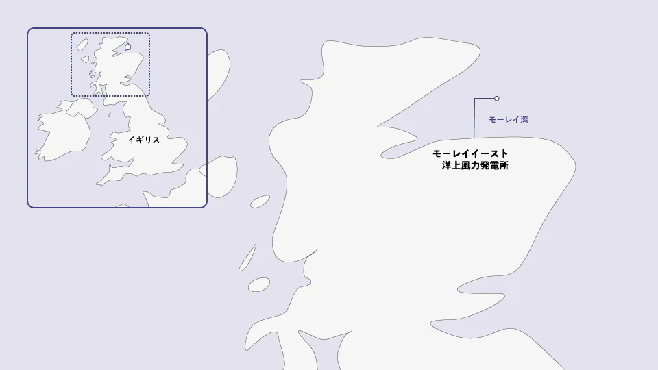 当社は、欧州における再生可能エネルギー事業を推進することを目的として英国に新設したINPEX Renewable Energy Europe Limited(現INPEX Europe Limited)を通じて、三菱商事株式会社の100%子会社である英国法人Diamond Generating Europe Limited社とDiamond Generating Europe Investments Limited社の株式譲渡契約を締結し、英国スコットランド沖合の海域にて操業中のモーレイイースト洋上風力発電所の16.7%持分を2023年3月に取得しました。モーレイイースト洋上風力発電所(着床式洋上風力発電)は、英国スコットランドモーレイ湾沖合約22kmの海域に位置し、2022年4月から950メガワット(9.5メガワット×100基)の出力規模で商業運転を行っています。