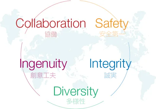 当社グループでは、役員・従業員が一体となって働くための共通の基盤として、5つの項目からなる「INPEXバリュー」を定めています。 INPEXバリューは当社グループの役員・従業員としての働き方をしめすものであり、すべての役員・従業員は日々の業務遂行にあたり具体的な行動を通じてバリューを体現することが求められています。
