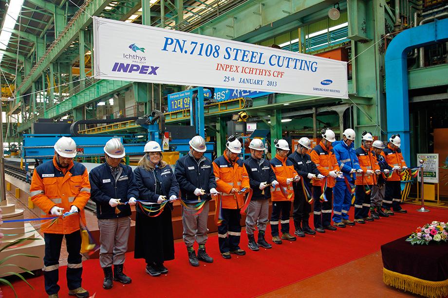 The INPEX-operated Ichthys LNG Project cut first steel yesterday for the hull of its Floating Production, Storage and Offloading (FPSO) facility in Okpo, Korea. With fabrication of the hull underway, work on all of the Ichthys LNG Project's major offshore facilities has commenced.