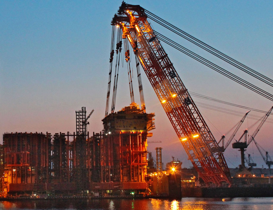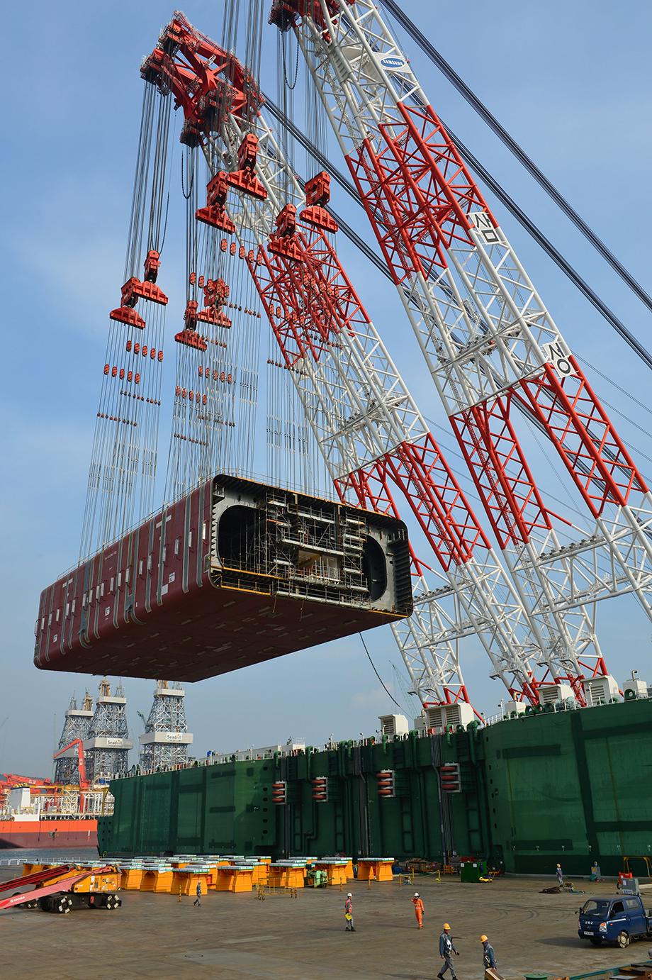 The final FPSO topside module being lifted at the shipyard in Okpo, South Korea