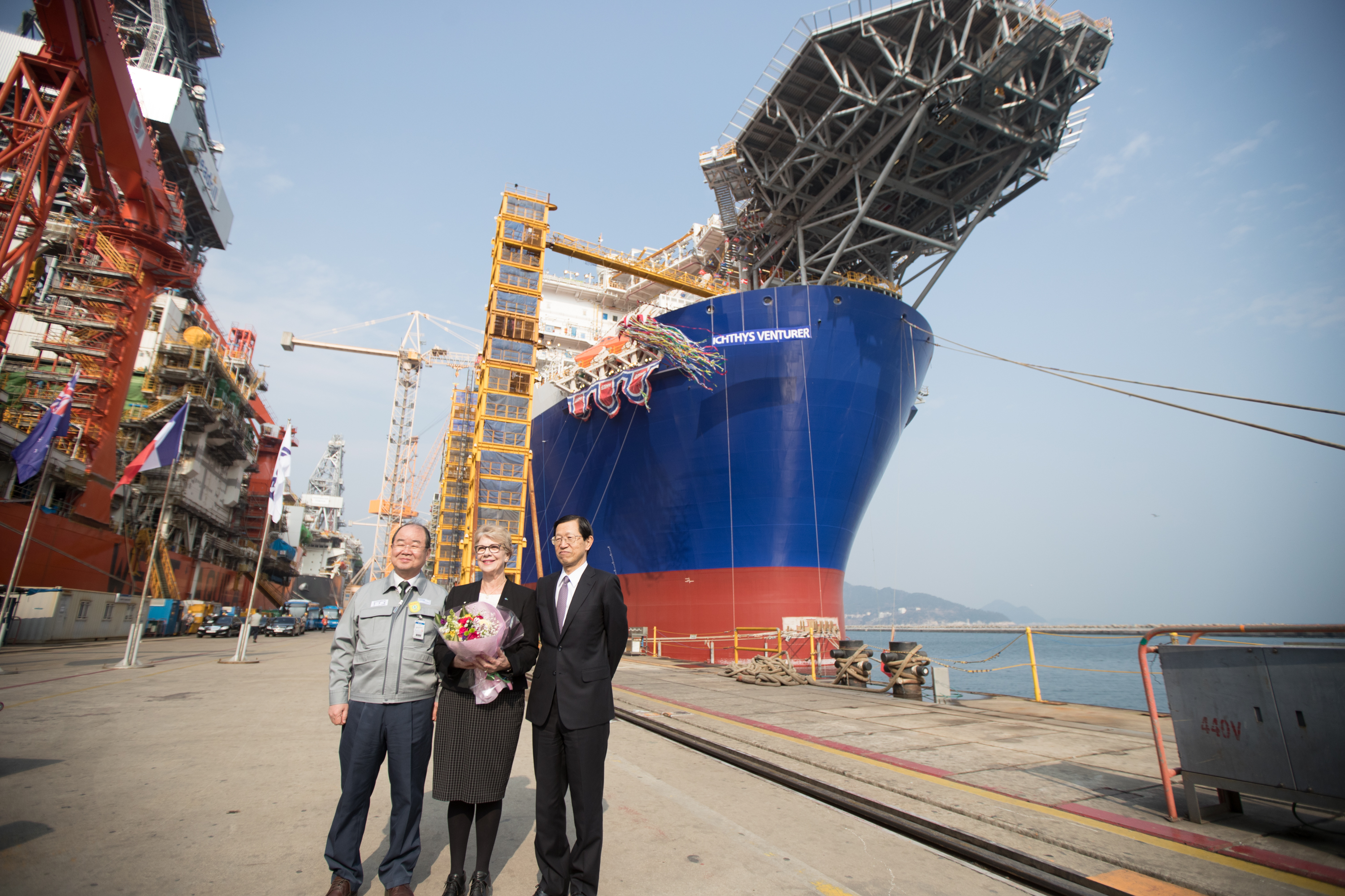 At Daewoo Shipbuilding and Marine Engineering (DSME) shipyard this morning, former Chief Minister of the Northern Territory of Australia the Hon. Clare Martin officially named the Project’s floating production, storage and offloading (FPSO) facility “Ichthys Venturer.”