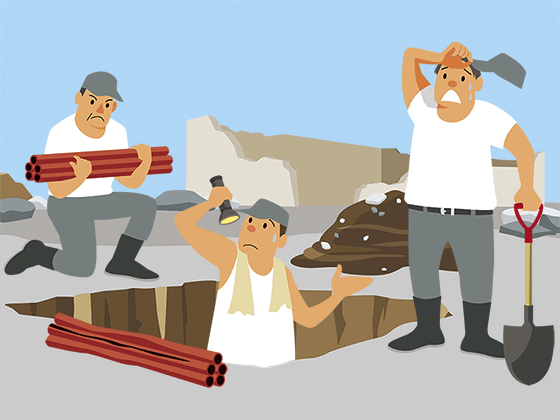 全国のガス会社も大きな被害をうけました。爆弾でガス管がこわされ、大切なガスがもれてしまったところもありました。ひとまず、ガス管を掘り起こして修理することから始めましたが、十分な道具もなく、必死の思いでガスを復旧させる作業をつづけたのです。